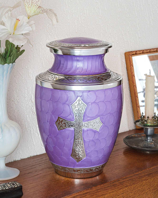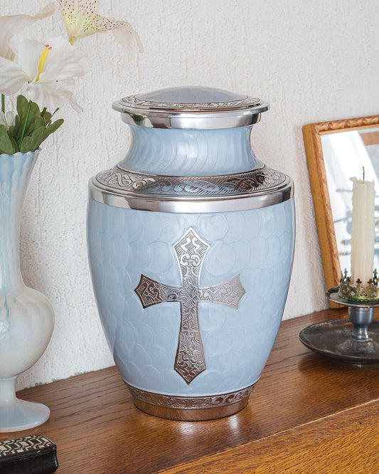 The size of a cremation urn depends on the amount of ashes you need to store. As a general rule, you’ll need one cubic inch of space per pound of body weight before cremation. We offer a variety of sizes, including adult urns, keepsake urns, and companion urns.